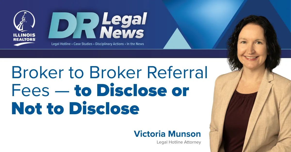 Illinois REALTORS®’ Legal Hotline is a valuable resource to members whose questions or issues are related to licensing, agency, brokerage agreements, or the NAR Code of Ethics.